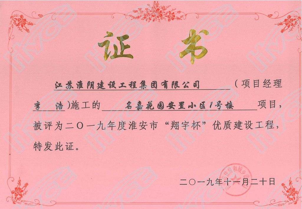 淮安市“翔宇杯”优质建设工程-名嘉花园安置小区1号楼