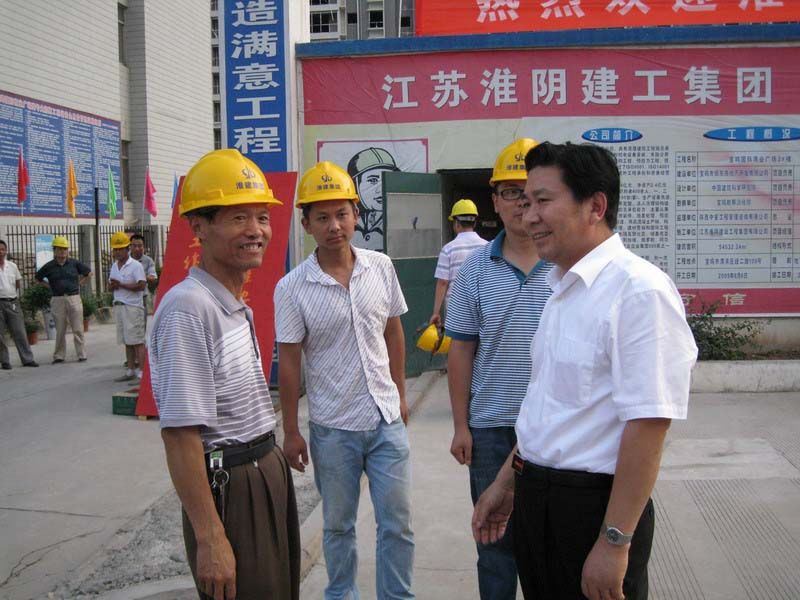 作为淮安市建筑业的龙头骨干企业,近年来集团,在稳固淮安市场的同时,不断注重外阜市场的开拓。特别是在中西部,先后开拓了陕西、新疆等地市场,宝鸡国际商业广场项目就是其中之一。该项目23万平米,涵盖住宅、商业、办公、酒店等业态,正在施工的2#住宅楼工程,地上33层、地下2层,建筑面积6.2万平米,是目前宝鸡市单体面积最大、高度最高的住宅楼。在视察交流中,刘市长希望集团宝鸡分公司:第一,要加强和地方建筑主管部门的联系,加强和当地同行的交流,把自己融入到宝鸡城市建设的队伍中去。第二,要搞好安全生产,安全是一切工作的前提和基础,安全不仅关系到企业的效益,更加关乎家庭的幸福和社会的稳定。第三,要注重工程质量,百年大计,质量为本,要把宝鸡国际商业广场项目做成精品工程、形象工程,打响淮建集团的品牌,打造淮安建筑业的品牌。第四,要关心照顾好职工的生活,出门在外不容易,在带领职工干好工作的同时,更有了解职工的所思所想,让在宝鸡工作的职工安心,让职工的家人放心。市政府将一如既往地关心关注淮建集团的发展,支持淮建集团领导班子在许金华董事长的带领下,不断创新经营理念,提升经营业态,加强管理,大胆工作,做强做大。